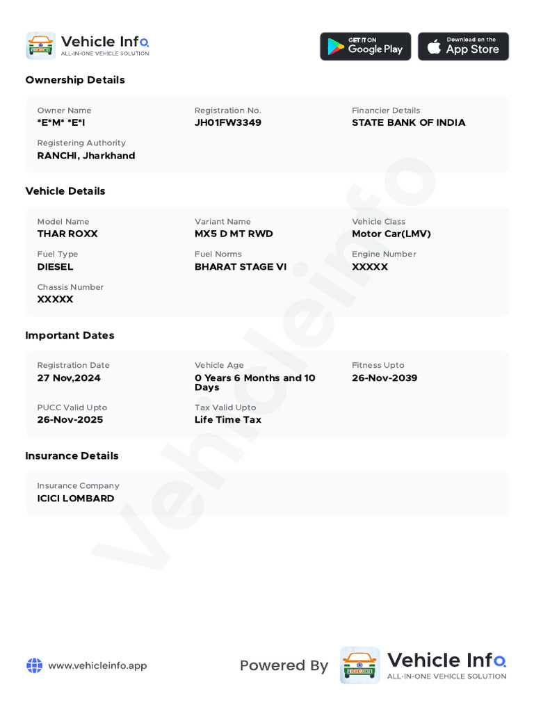 PUCC Valid Upto Tax Valid Upto