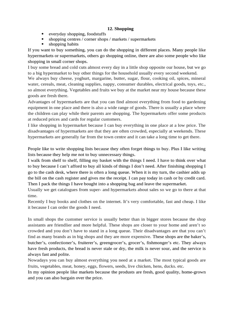 Nowadays you can buy almost everything you need at a market. The most typical goods are
