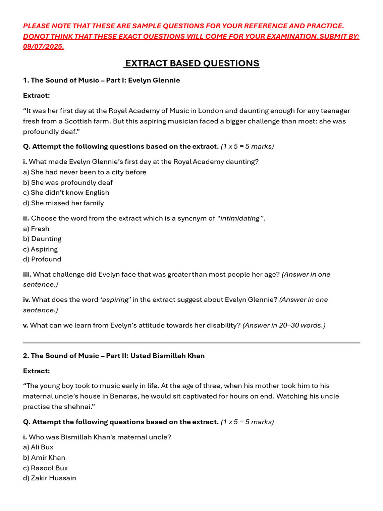 EXTRACT BASED QUESTIONS