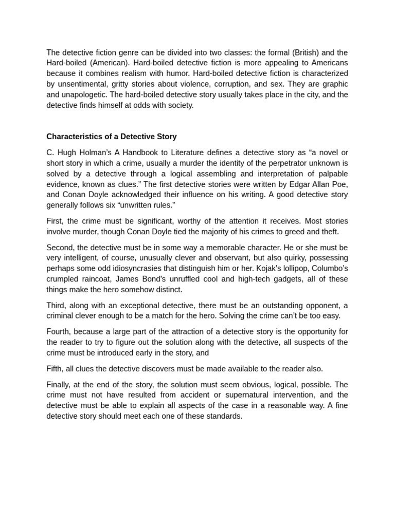 The detective fiction genre can be divided into two classes: the formal (British) and the