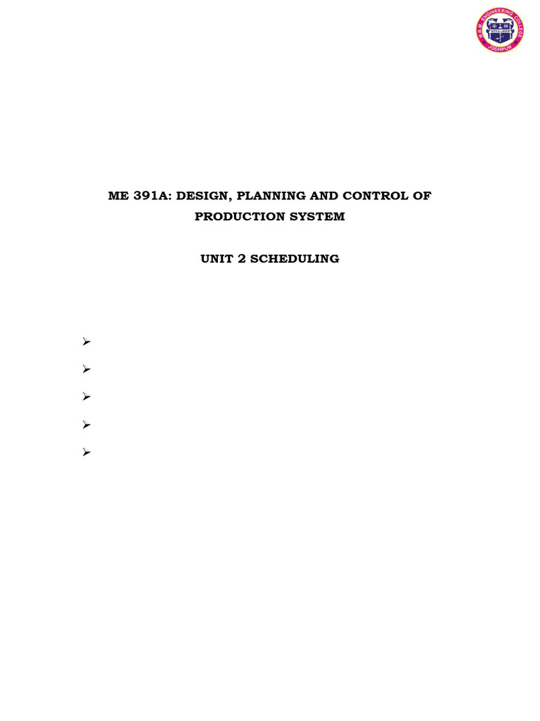 ME 391A DESIGN, PLANNING AND CONTROL OF PRODUCTION SYSTEM UNIT 2
