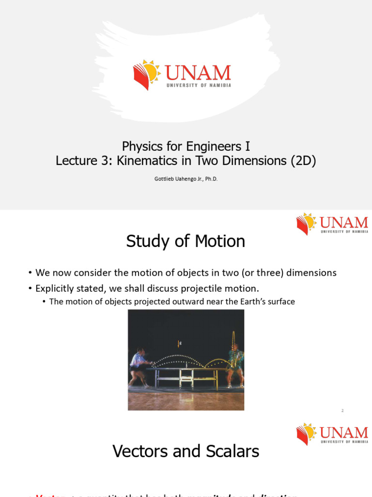 Lecture 3: Kinematics in Two Dimensions (2D)