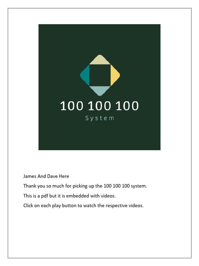 Thank you so much for picking up the 100 100 100 system.