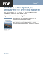 developments, particularly in the areas of fire and explosion loading. The application of this substantial additional information, in conjunction with the IGNs, has presented significant difficulties for duty holders, designers and regulators alike, primarily because the significance of the additional research and technology development has not been drawn together in a single usable document. OBJECTIVES OF THE GUIDANCE The primary objective of the Guidance is to offer advice on practices and methodologies which can lead to a reduction in risk to life, the environment and the integrity of offshore facilities exposed to the explosion hazard. Preventative measures are the most effective means of minimising the probability of an event and its associated risk. The concepts of Inherently Safer Design or Inherent Safety are central to the approach described both for modifications of existing structures and new designs. The Guidance is intended to assist designers, duty holders and regulators during Greenfield designs or brownfield modifications and re-assessments, in order to optimise and prioritise effort and expenditure where it has most safety benefit. Overview of the Guidance Part 1 of the Guidance (2,3),'Guidance on Design and Operational Considerations for the Avoidance and Mitigation of Explosions', has recently been issued and is available from www.fireandblast.com. Part 1 has covered the following subject areas:Explosion Hazard Philosophy this sets out the fundamental principles, goals and approaches including the risk classification of compartments and installations in order to focus design effort where it is most needed and to give an early indication of the severity of the hazard. The derivation of Nominal Explosion loads is discussed. These Nominal loads are for use at an early project phase or for low risk installations.