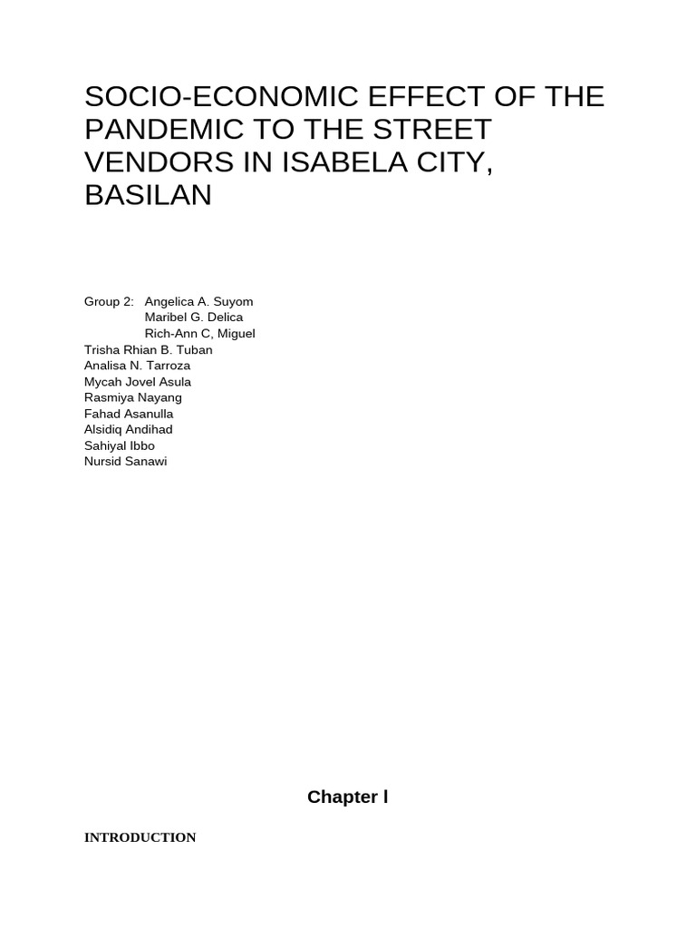 Delimitations: This study is delimited to street vendors within Isabela City, Basilan, and does