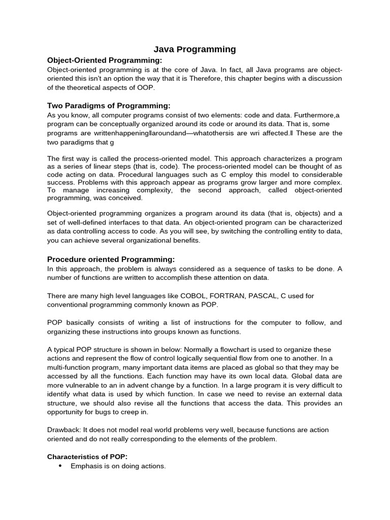 Object-oriented programming is at the core of Java. In fact, all Java programs are object-