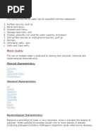 Quality of water Supply, Development of sewerage facility, cost of water, metering policy, system of