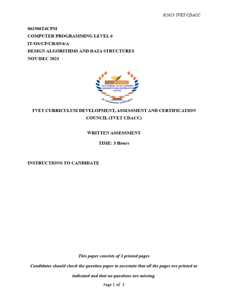 TVET CURRICULUM DEVELOPMENT, ASSESSMENT AND CERTIFICATION
