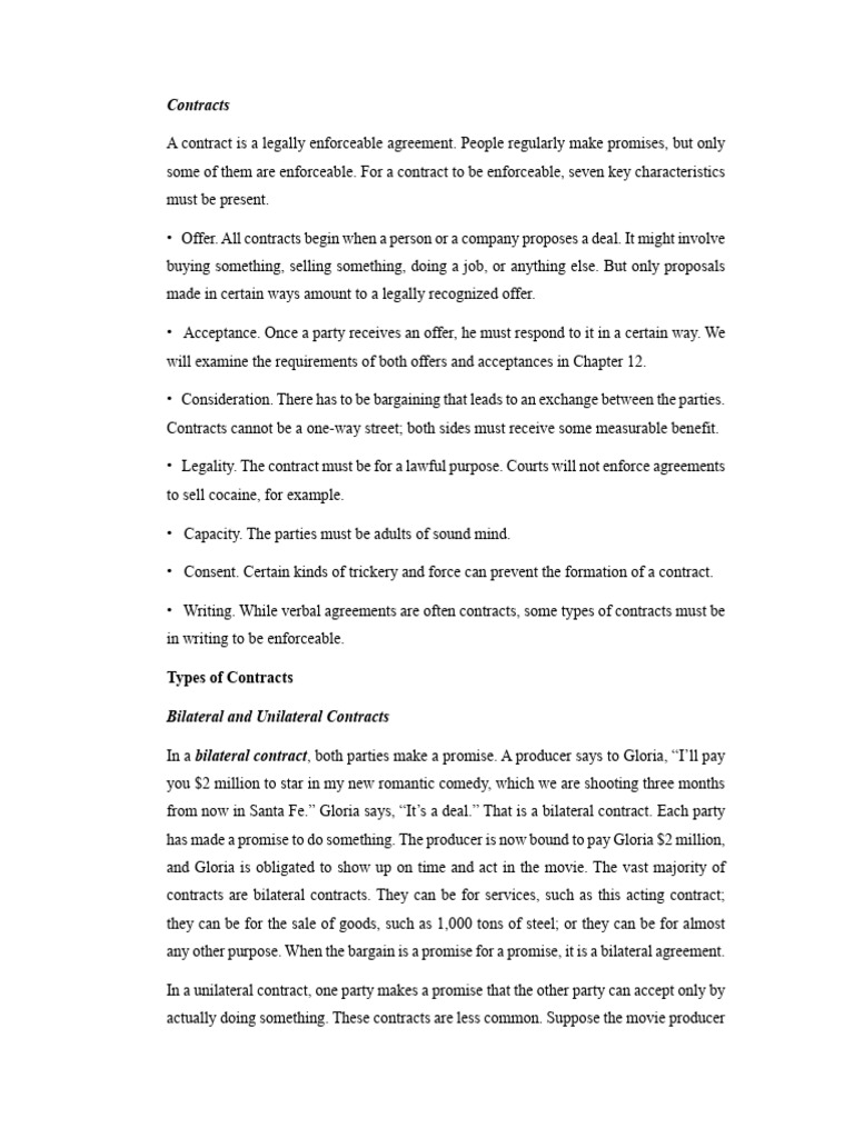 In a bilateral contract, both parties make a promise. A producer says to Gloria, “I’ll pay