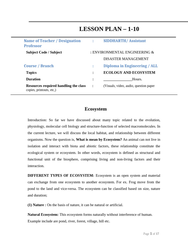 Study of specific Ecosystem: Lets take a example of fresh water pond to understand the