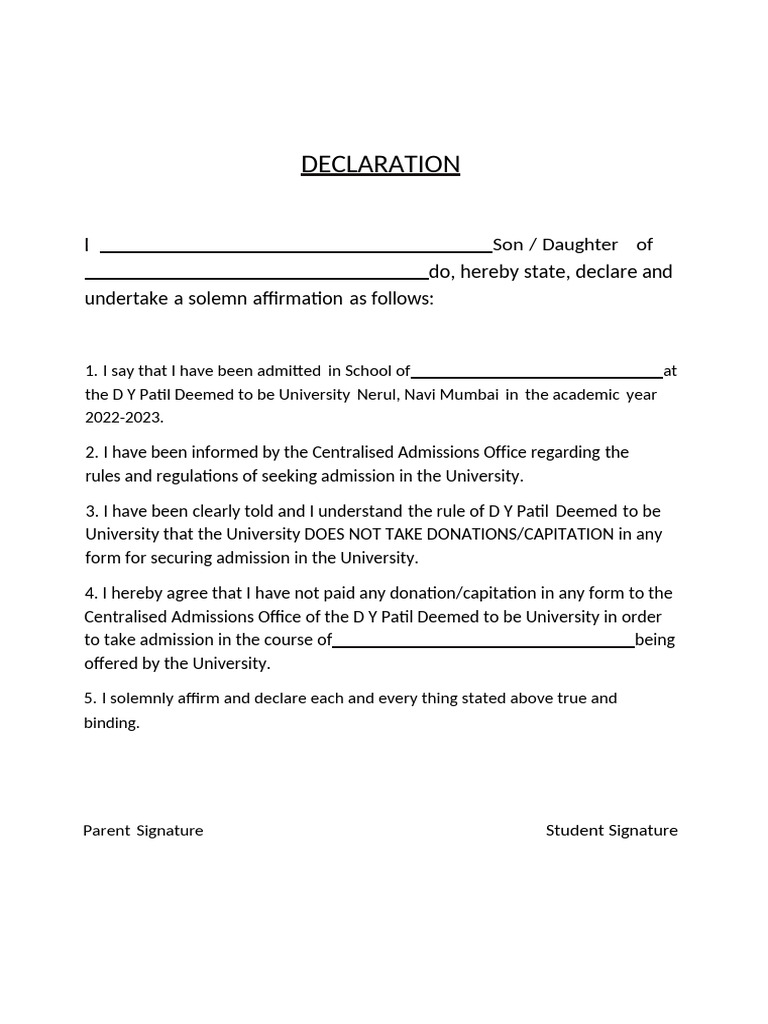 3. I have been clearly told and I understand the rule of D Y Patil Deemed to be