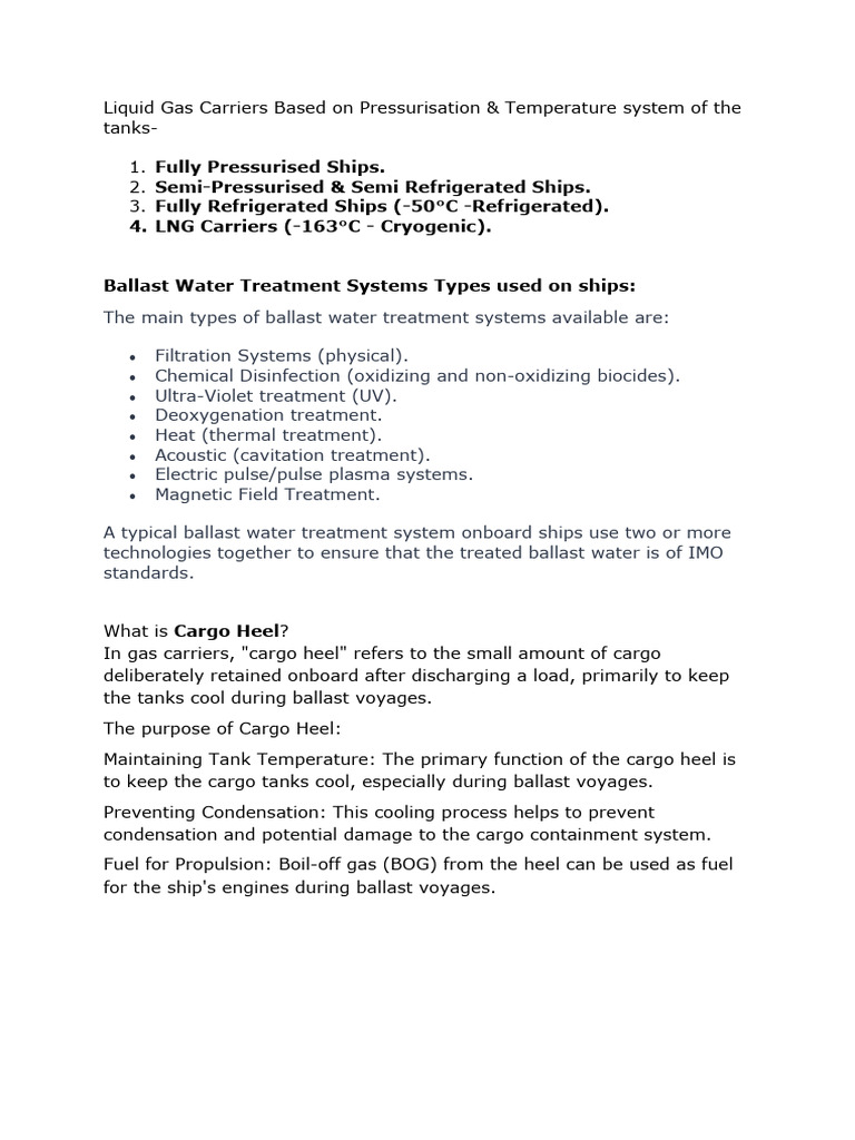 Liquid Gas Carriers Based on Pressurisation & Temperature system of the