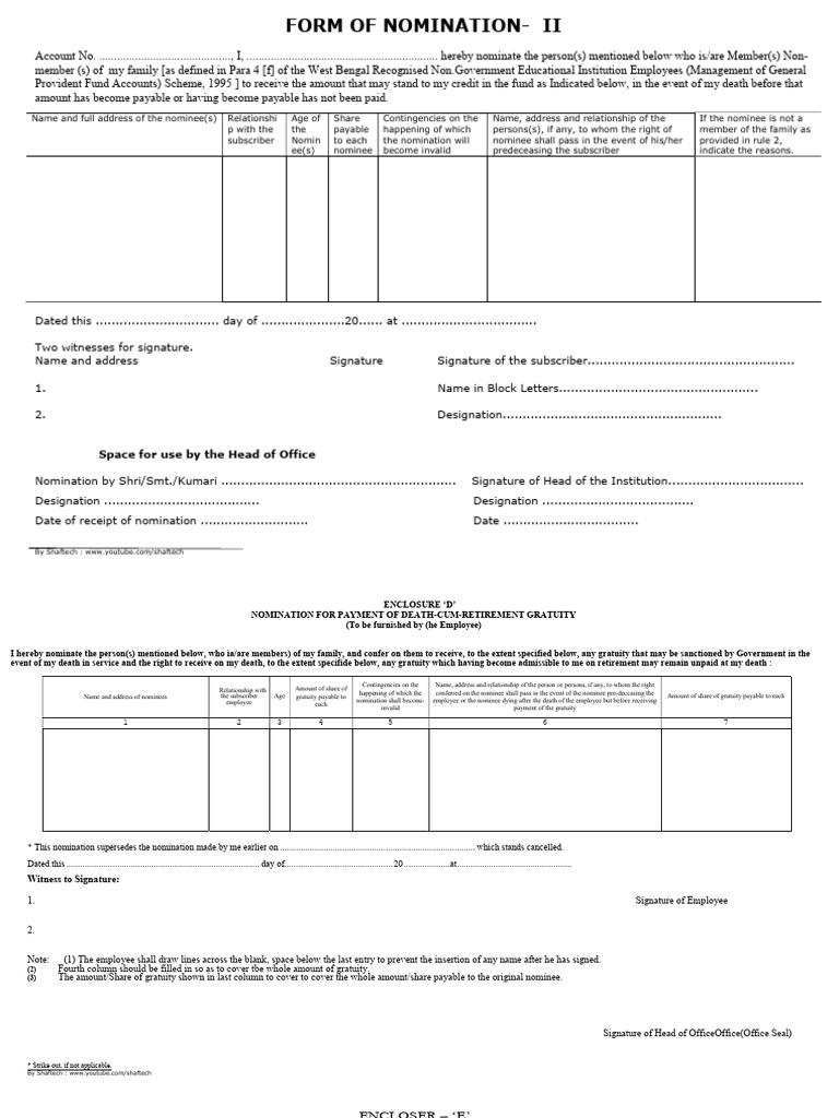 I hereby nominate the person(s) mentioned below, who ia/are members) of my family, and confer on them to receive, to the extent specified below, any gratuity that may be sanctioned by Government in the