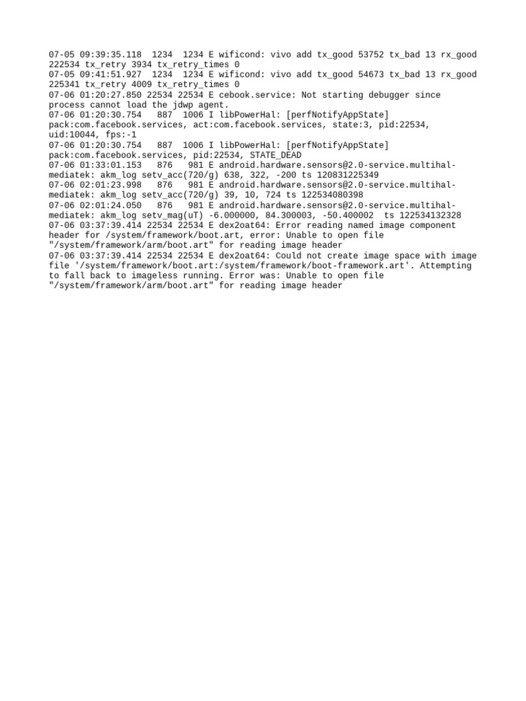 07-05 [Link].927 1234 1234 E wificond: vivo add tx_good 54673 tx_bad 13 rx_good