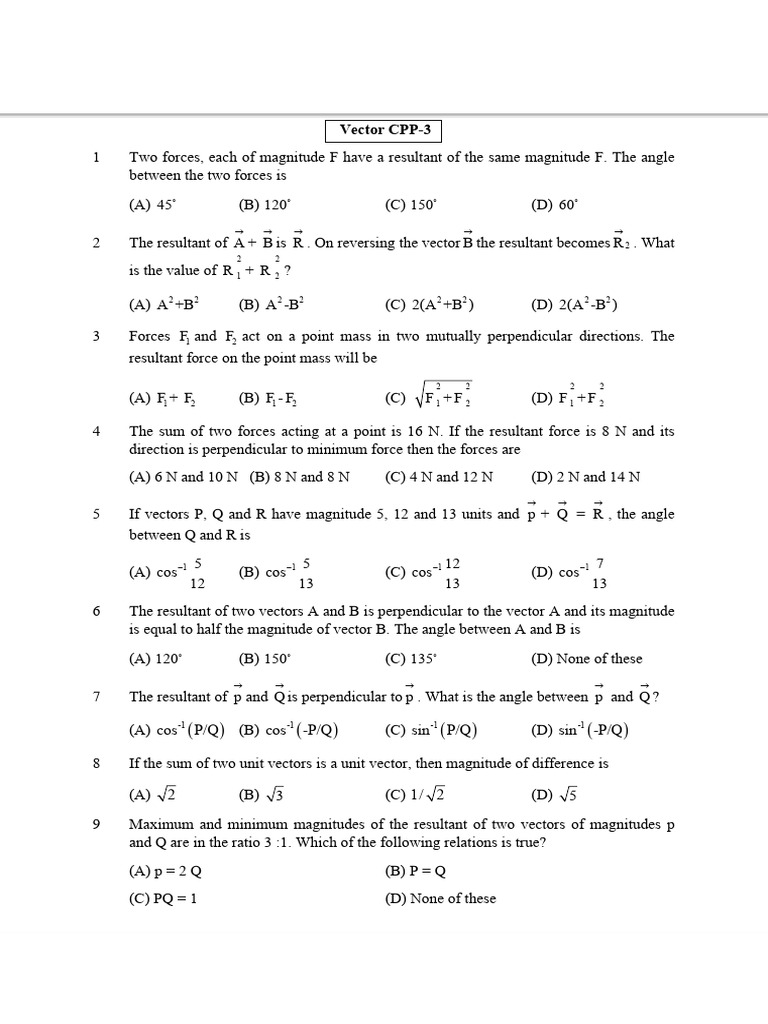 5 If vectors P, Q and R have magnitude 5, 12 and 13 units and p + Q = R , the angle