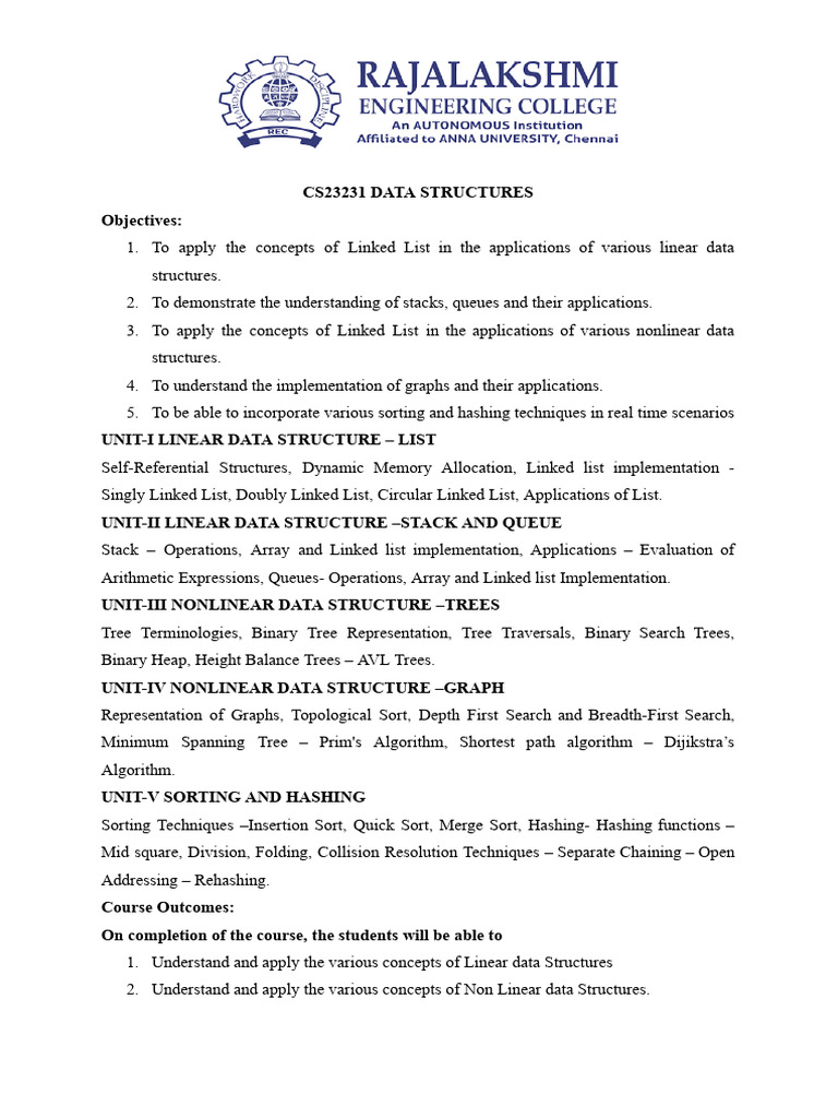 2. Understand and apply the various concepts of Non Linear data Structures.