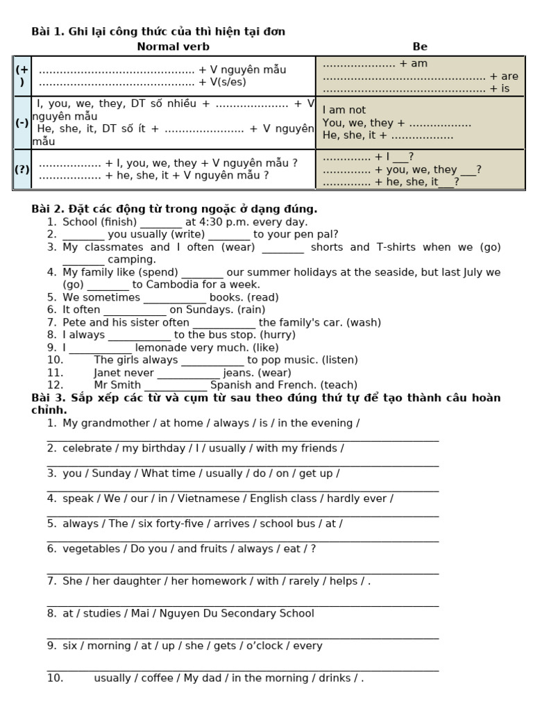 3. My classmates and I often (wear) ________ shorts and T-shirts when we (go)