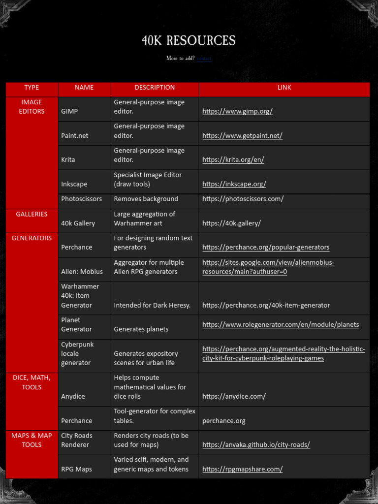 40k RPG Tools many systems. [Link]