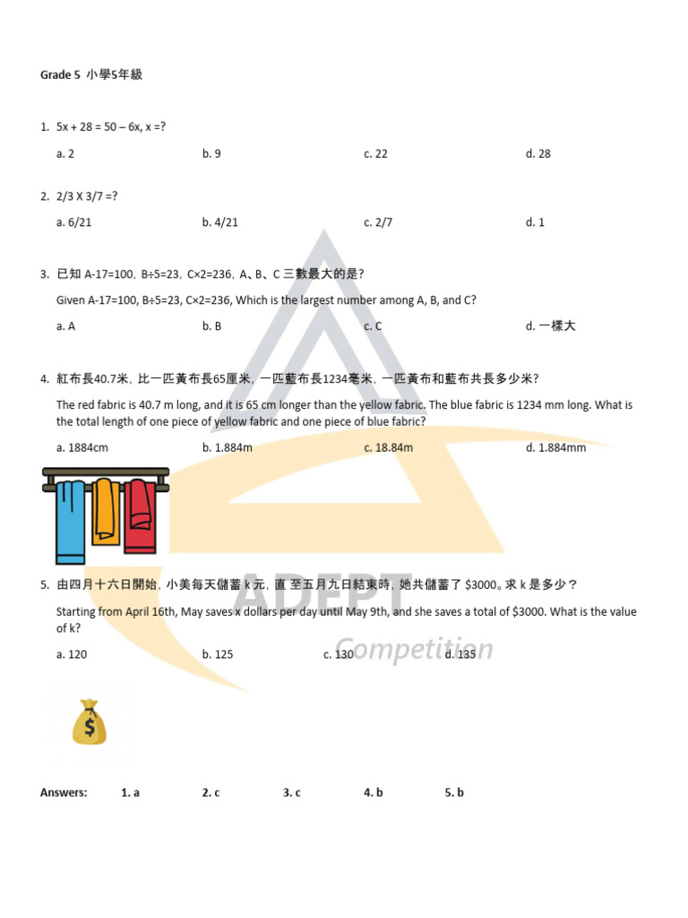 5. 由四月十六日開始,小美每天儲蓄 k 元,直 至五月九日結束時,她共儲蓄了 $3000。求 k 是多少?