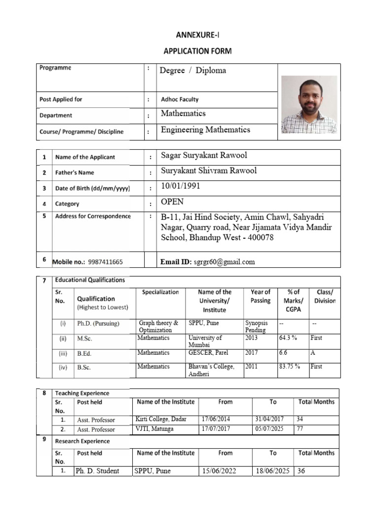 Asst. Professor VJTI, Matunga 17/07/2017 05/07/2025 77