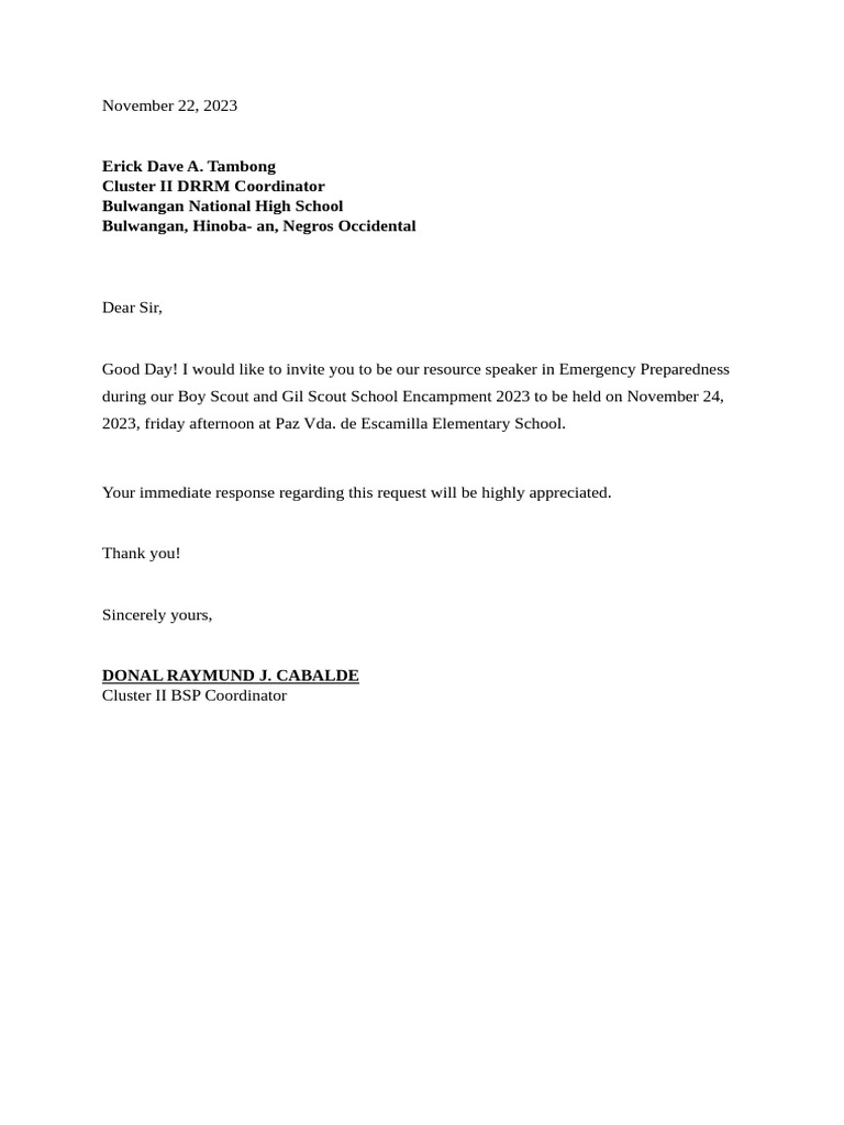 Good Day! I, Donald Raymund J. Cabalde, is writing this letter to formally request from your