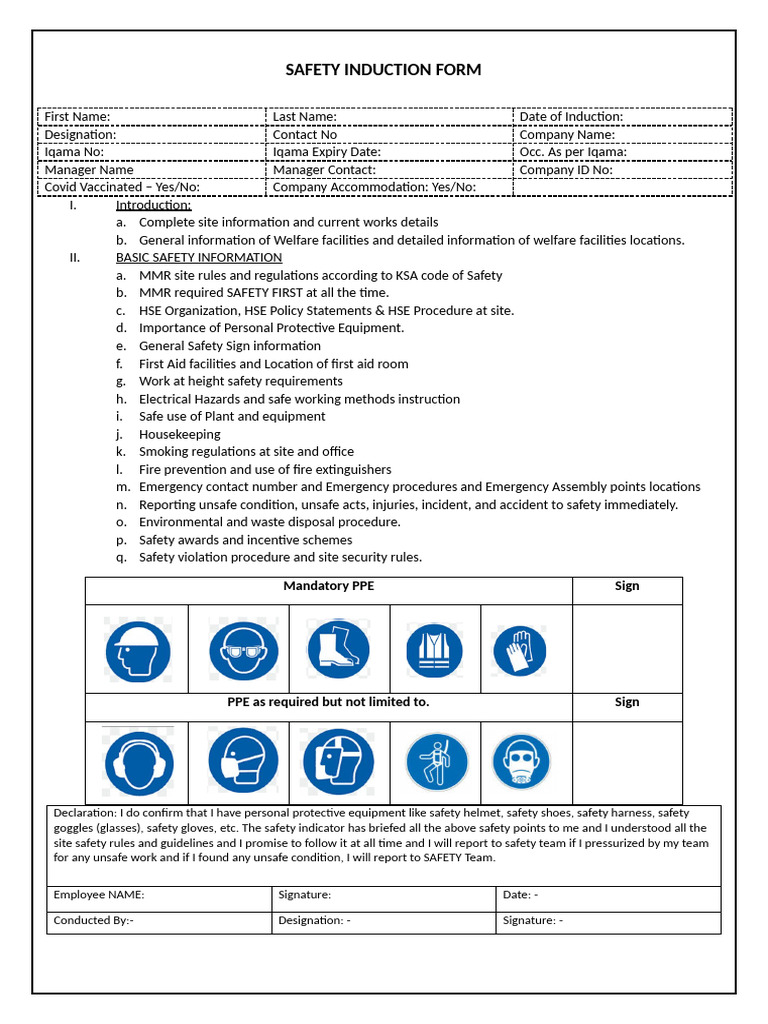 SAFETY INDUCTION FORM