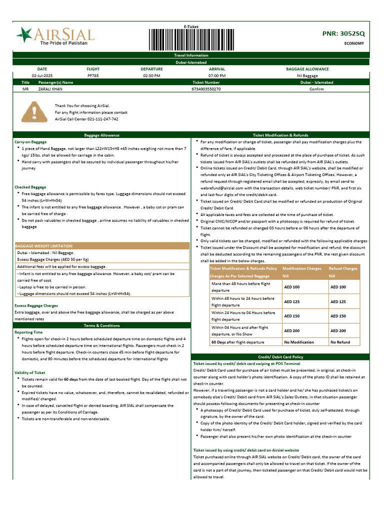 Title Passenger(s) Name Ticket Number Dubai - Islamabad