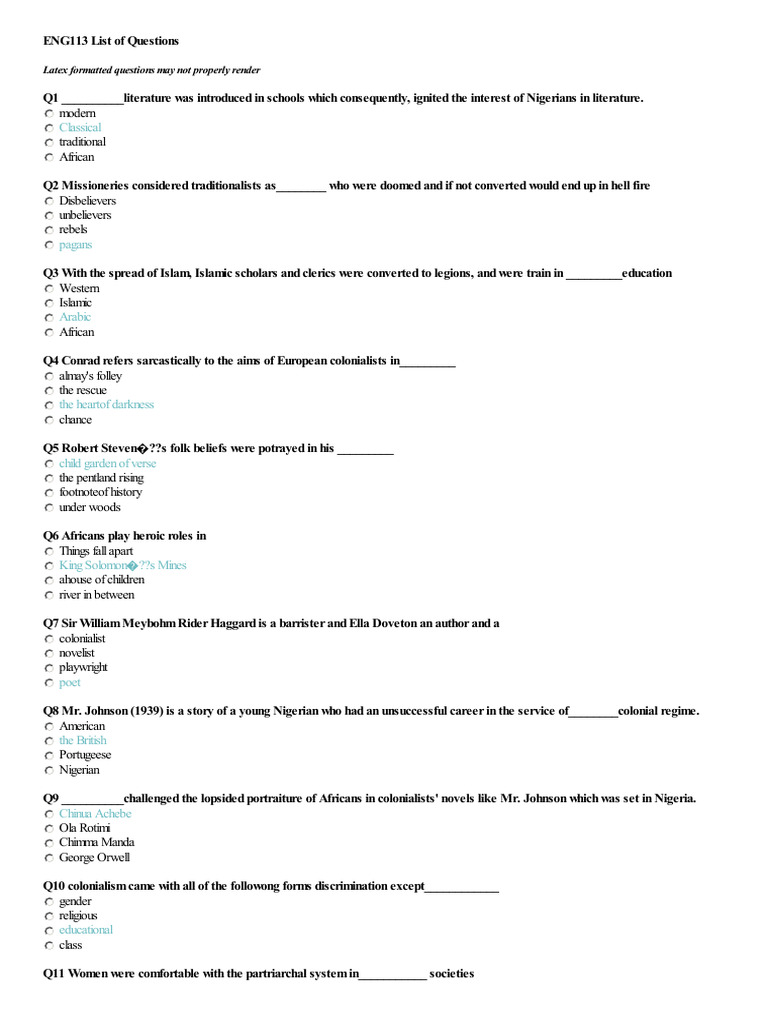 Q1 __________literature was introduced in schools which consequently, ignited the interest of Nigerians in literature.