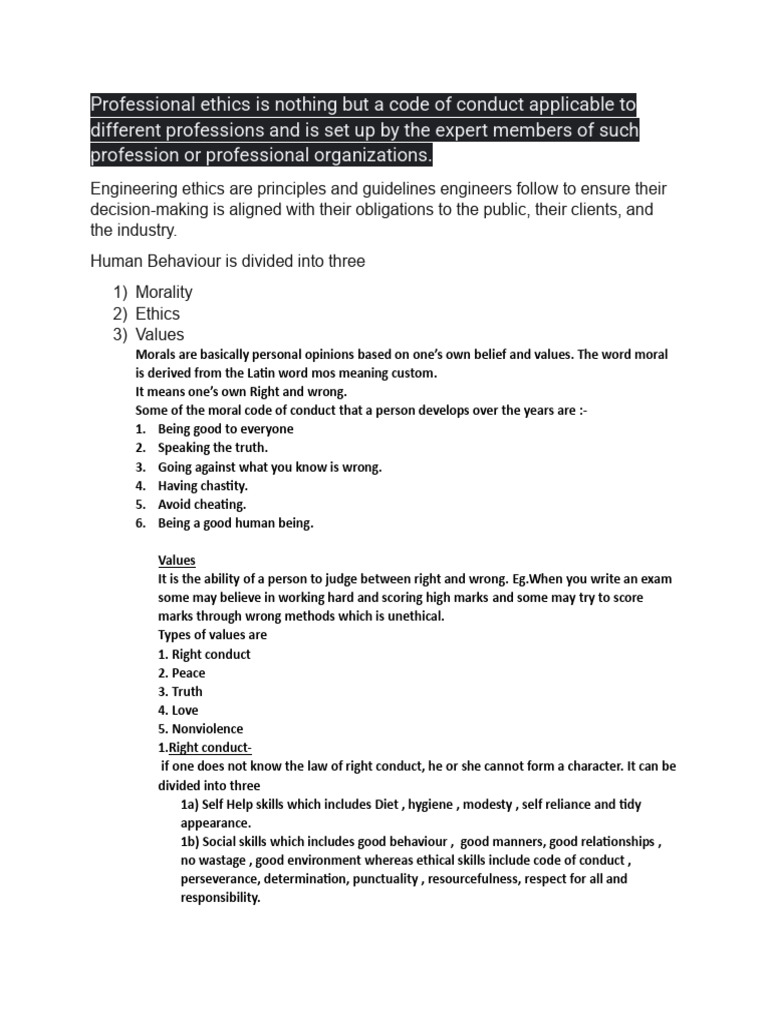 Professional ethics is nothing but a code of conduct applicable to