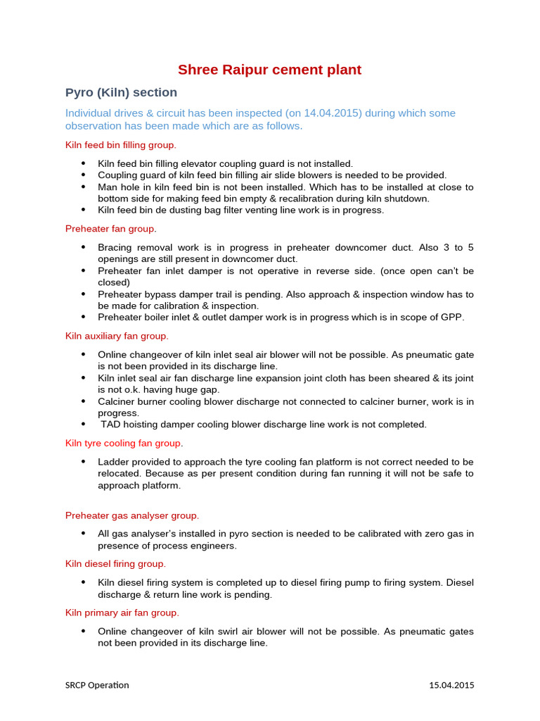 Installation of coal firing line to kiln & calciner is pending, work is in progress.