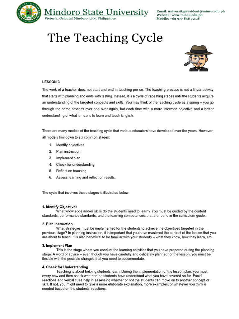The following is a narrative of how a teacher might experience the teaching cycle.