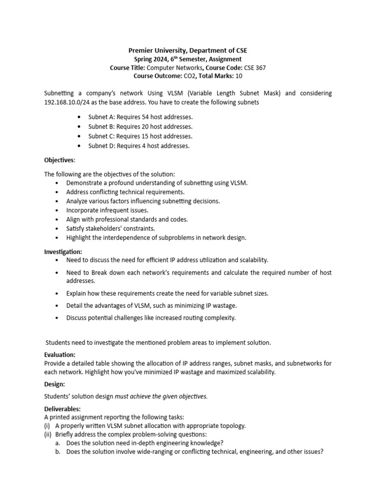 Subnetting a company’s network Using VLSM (Variable Length Subnet Mask) and considering