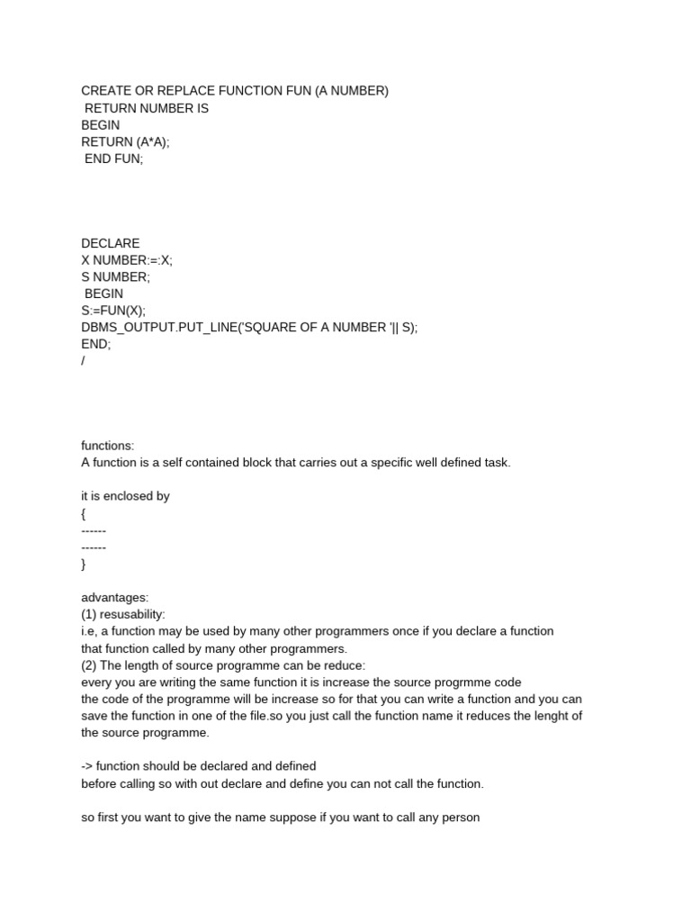 CREATE OR REPLACE FUNCTION FUN (A NUMBER)