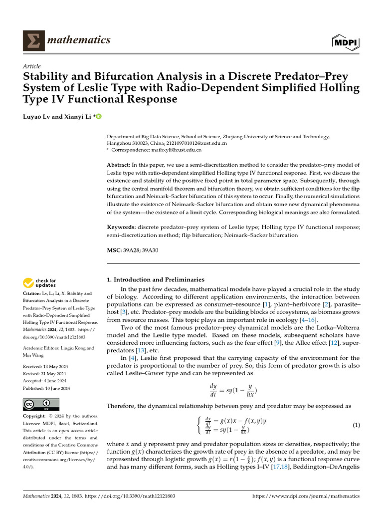 23. Yao, W.; Li, X. Bifurcation difference induced by different discrete methods in a discrete predator-prey model. J. Nonlinear