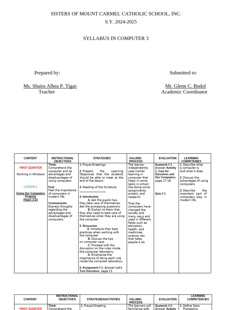 SYLLABUS IN COMPUTER 3
