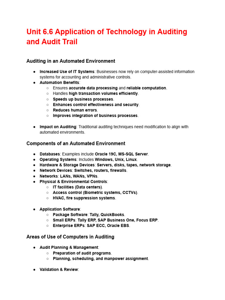 Unit 6.5 Audit Sampling, Audit Techniques and