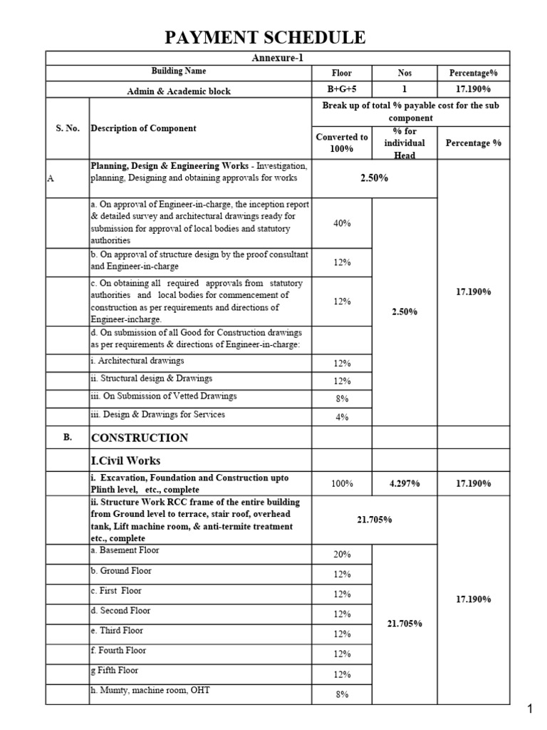Break up of total % payable cost for the sub