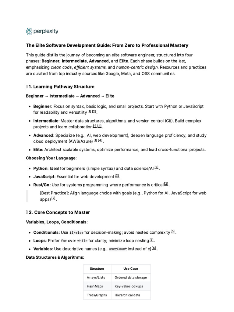 This guide distills the journey of becoming an elite software engineer, structured into four