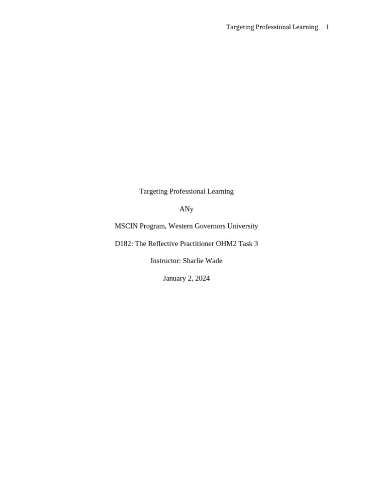 D182: The Reflective Practitioner OHM2 Task 3