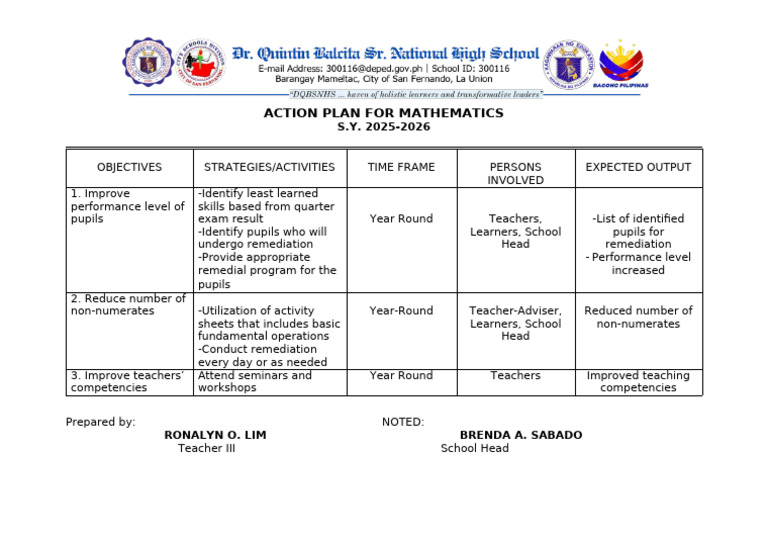 ACTION PLAN FOR MATHEMATICS
