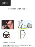 The moment of a force is the ability of the force to rotate a body about an axis. The axis