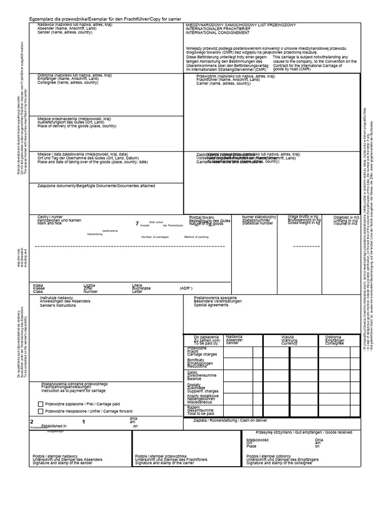 Egzemplarz Dla Przewoźnika/exemplar Für Den Frachtführer/Copy For Carrier