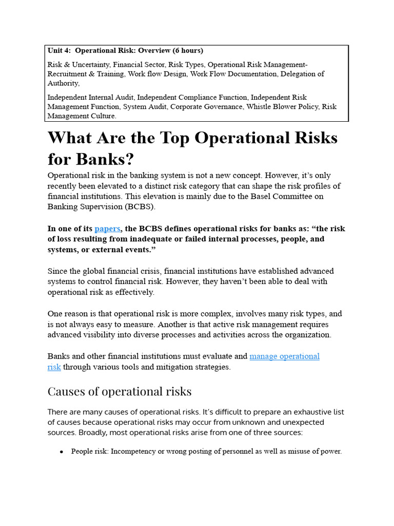 Risk & Uncertainty, Financial Sector, Risk Types, Operational Risk Management-