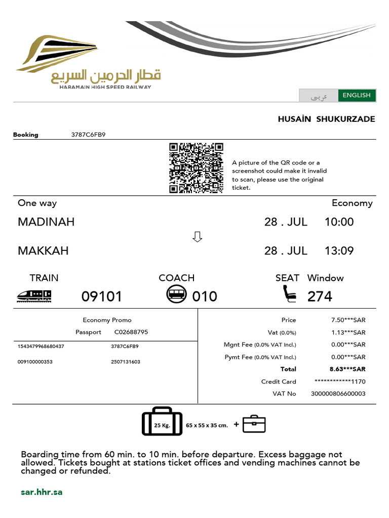 21. Passenger’s dress code onboard HHR trains must be in accordance to public dress code laws of KSA.