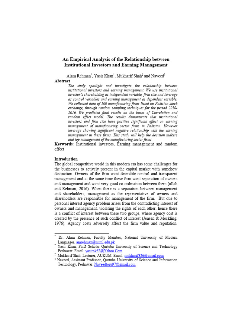 An Empirical Analysis of the Relationship between Institutional Investors … Batool, Alam [Link].