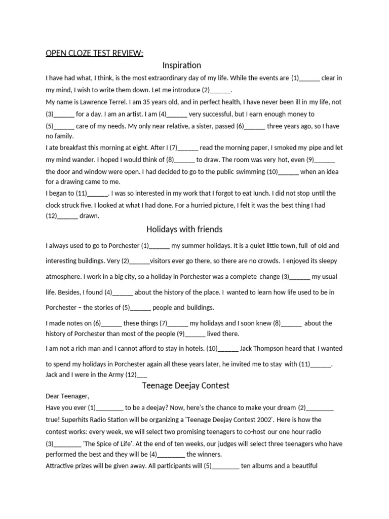 I always used to go to Porchester (1)______ my summer holidays. It is a quiet little town, full of old and