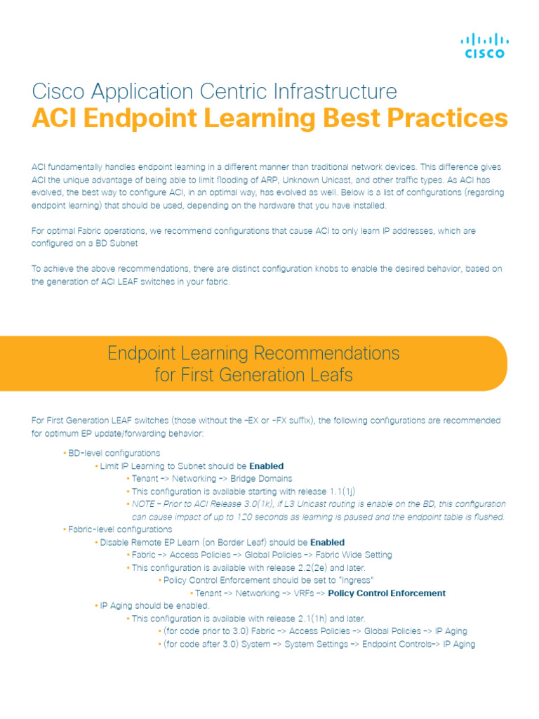 ACI fundamentally handles endpoint learning in a different manner than traditional network devices. This difference gives