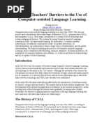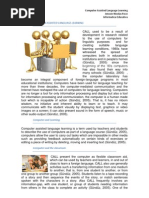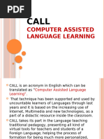 En este documento encontraremos una nueva alternativa de aprender un segundo idioma con estrategias basadas en instrumentos que atraigan la atencin de las personas sin importar su edad. Se considera la tecnologa como un medio de innovacin en cuanto al aprendizaje, puesto que es difcil captar la atencin de un pblico y sobre todo con una herramienta como lo es la tecnologa, que se presta para muchas otras cosas. Sin embargo, es una excelente estrategia porque es muy interesante y en cierta parte es exclusivo. Aqu vamos a encontramos una breve descripcin acerca de este sistema llamado Computer Assisted Language Learning (C.A.L.L), sus referencias y algunos comentarios sobre el mismo, los cuales describen la calidad de este sistema. C.A.L.L. (COMPUTER ASSISTED LANGUAGE LEARNING)