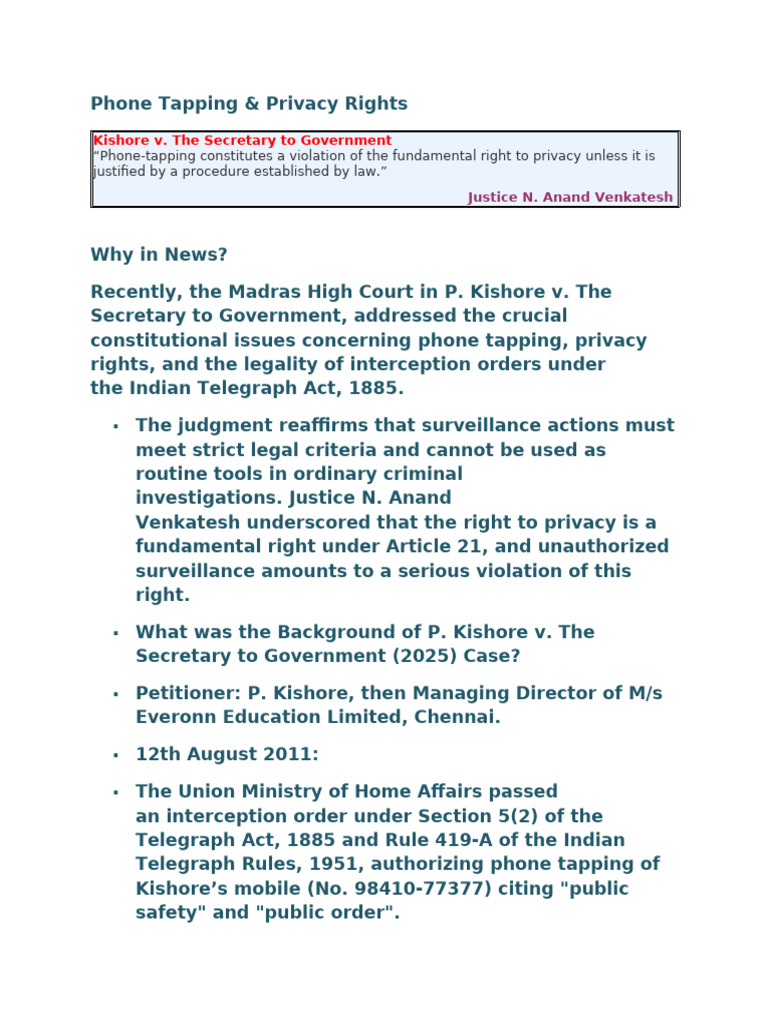 Right to Privacy and Phone Tapping:
