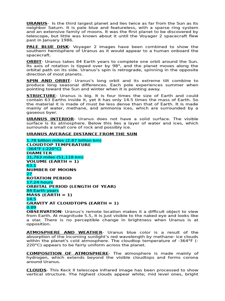 ATMOSPHERE AND WEATHER- Uranus blue color is a result of the